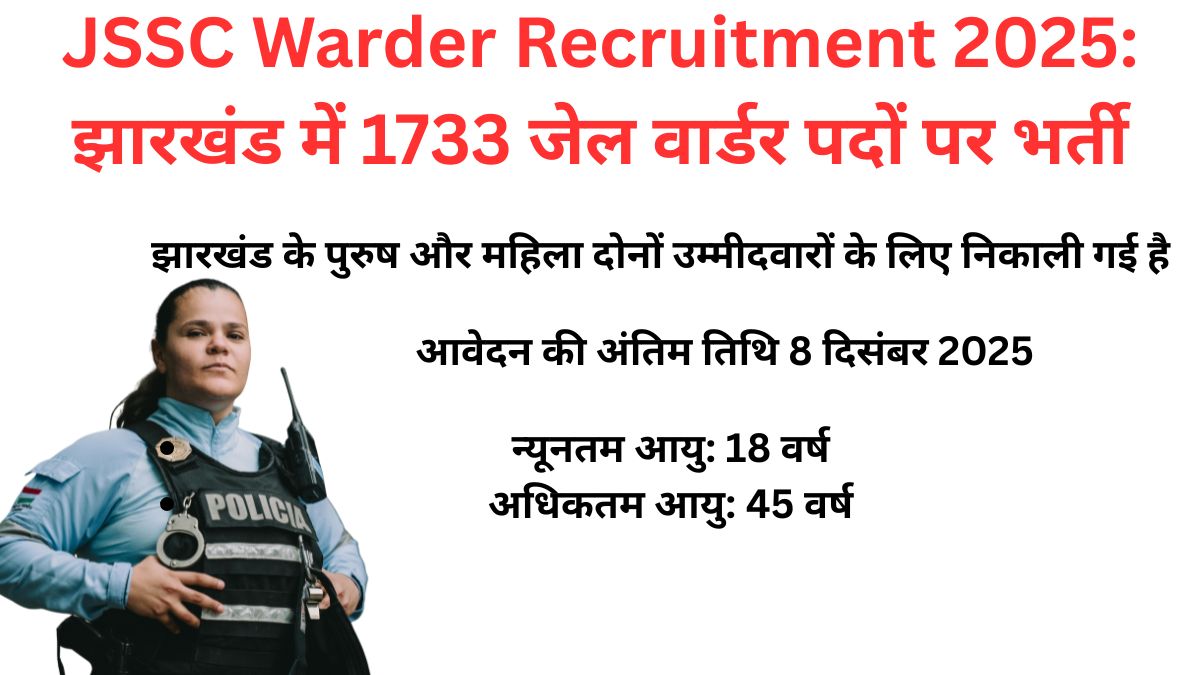 JSSC Warder Recruitment 2025: झारखंड में 1733 जेल वार्डर पदों पर भर्ती | आवेदन करें jssc.jharkhand.gov.in पर